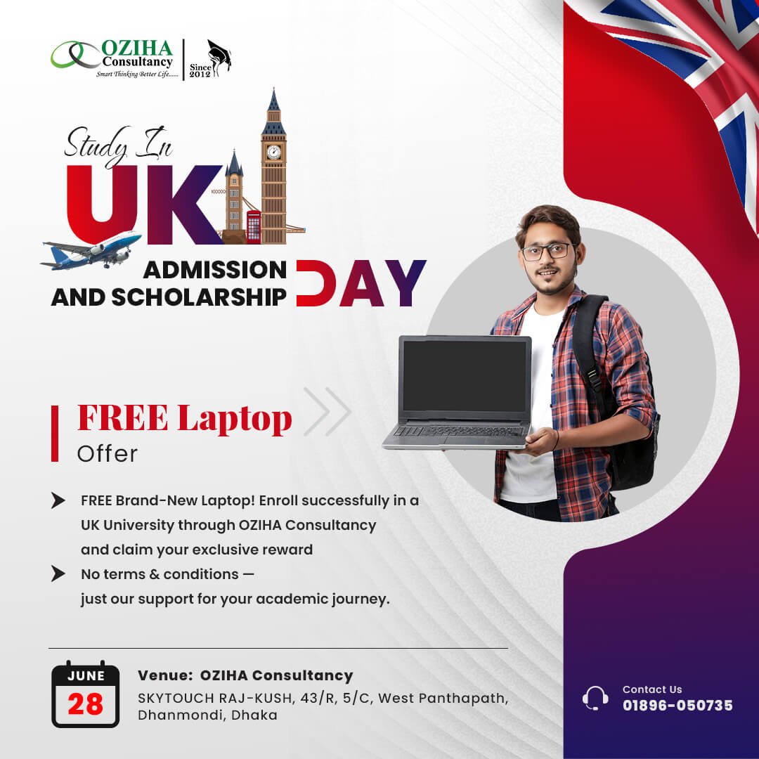 π Get a FREE Laptop (Successfully enroll in a UK university through OZIHA Consultancy and receive an exclusive laptop)